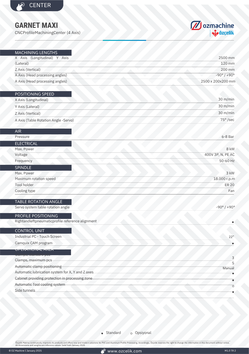 The GARNET MAXI machine is a 4-servo axis profile processing center. In addition to the processing axes, it has the ability