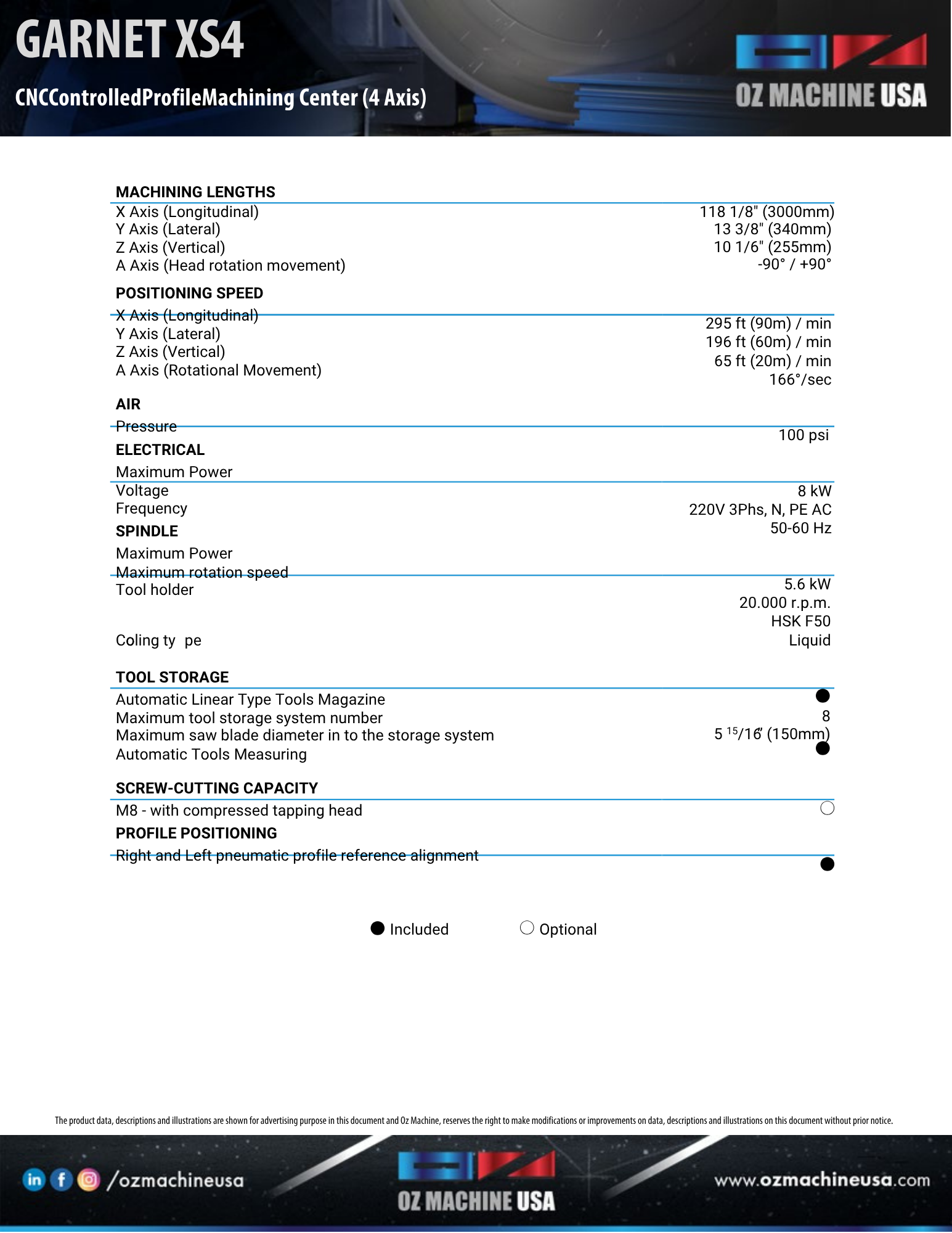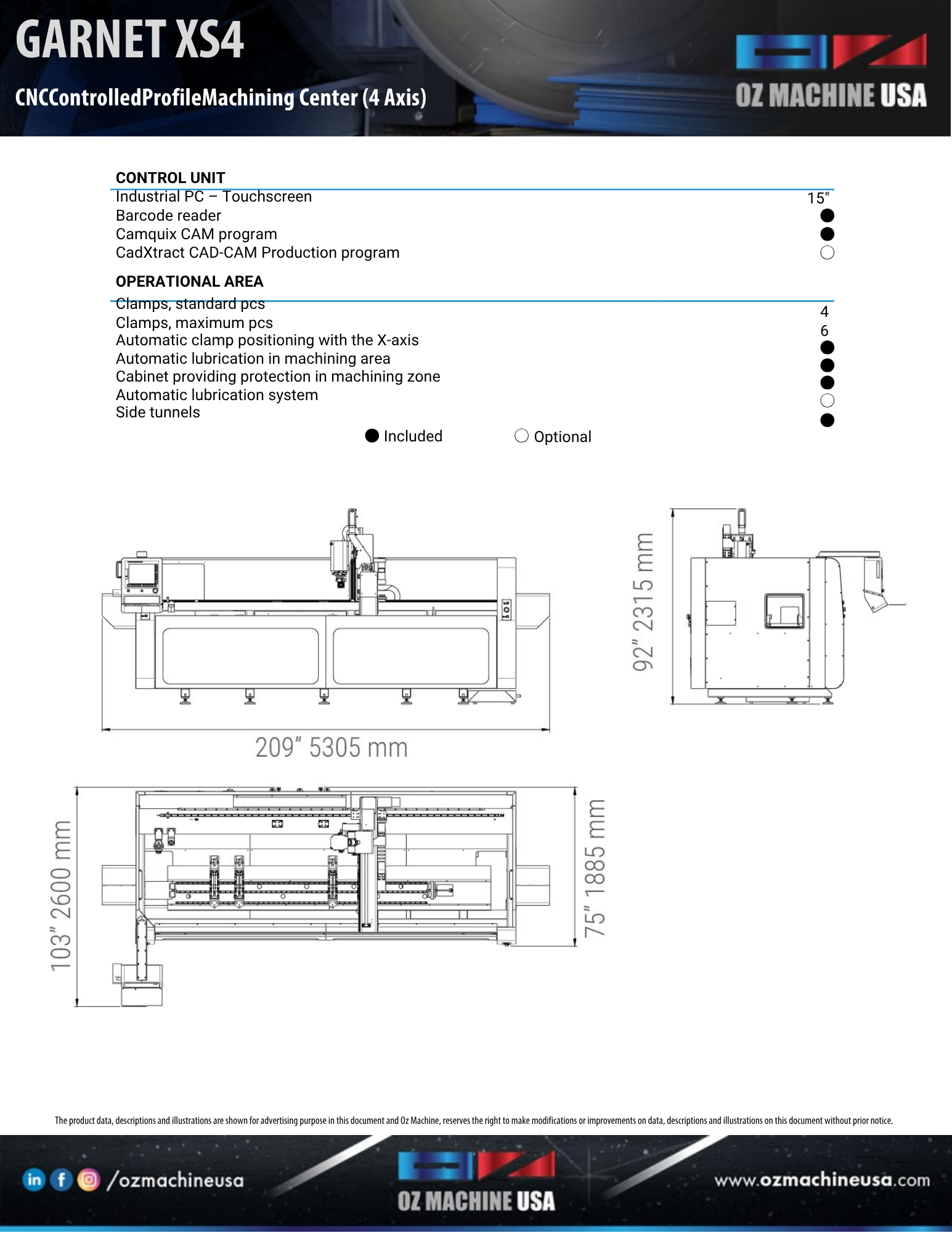 GARNET XS4 CNC Controlled Profile Machining Center (4 Axis)