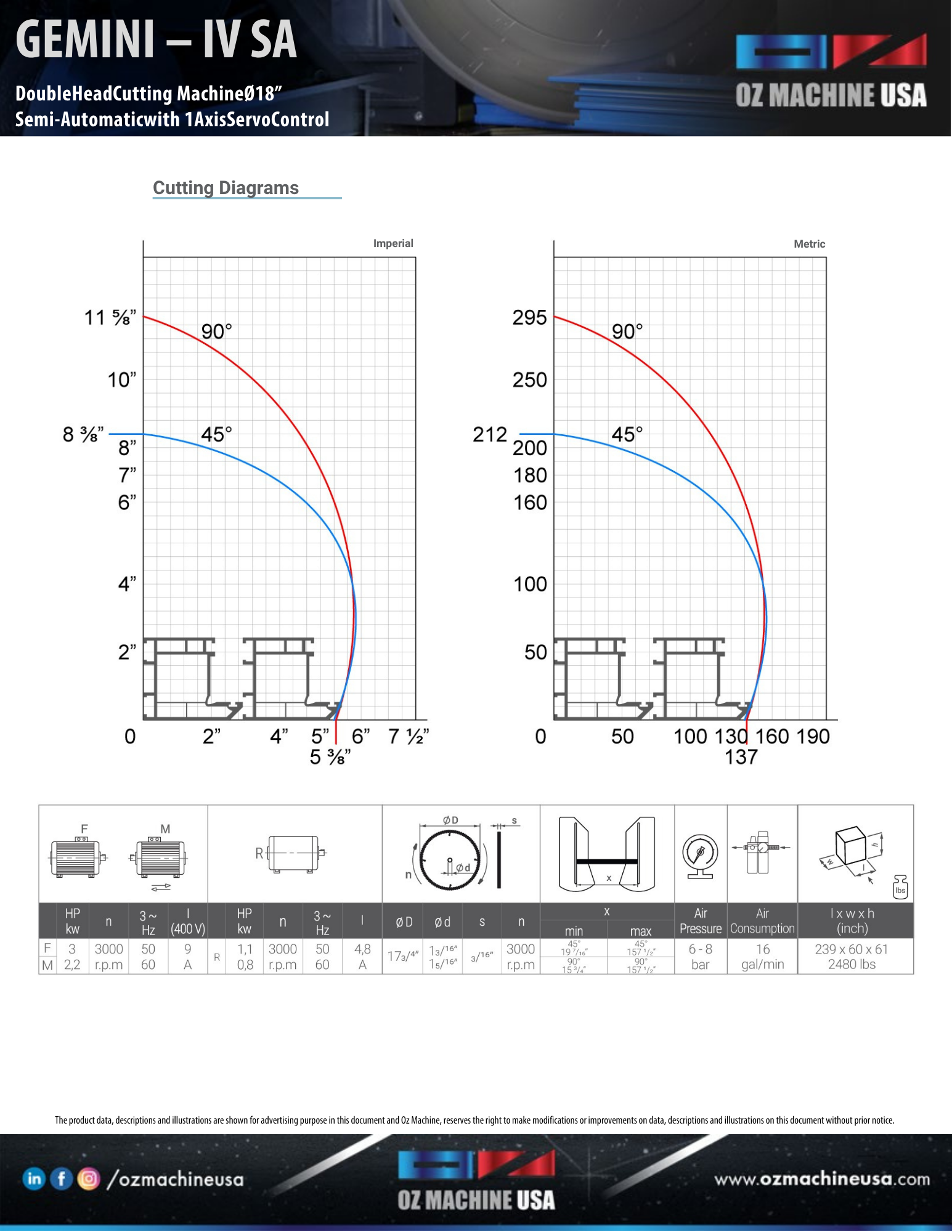 GEMINI – IV SA performs quick hydro-pneumatic angle positioning in 2 inclination models of -45°, 90° and 90°, 45° angles, while the heads that perform manual positioning in all other intermediate angles provide a perfect cutting process.