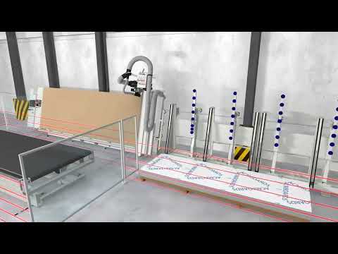 When the table is perfectly flat the operator can activate the mat by a pedal to feed the panels to his position for the picking up.