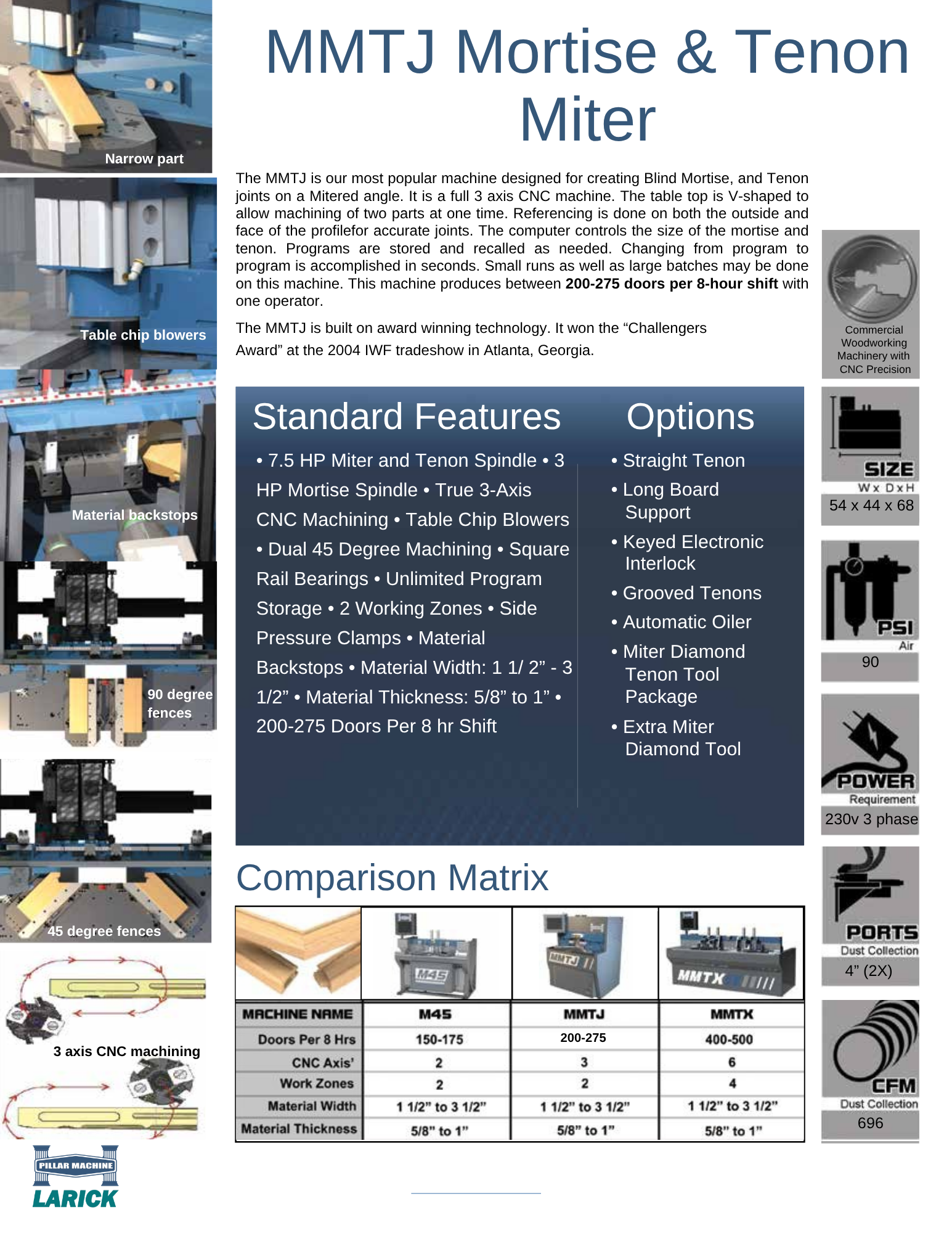 The MMTJ is our most popular machine designed for creating Blind Mortise, and Tenon joints on a Mitered angle.
