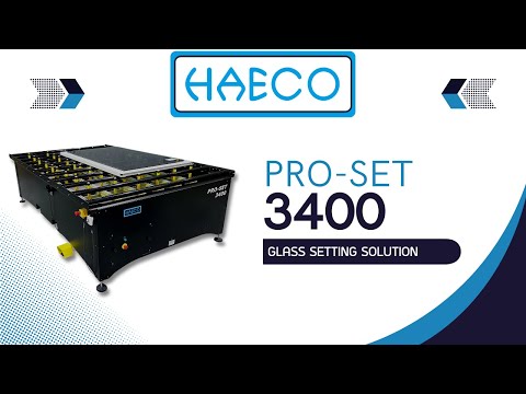 The HAECO PRO-SET allows you to evenly and safely set your IG units into the frame. The operator selects the profile height to be processed then raises the "lift-fingers" by use of a touch switch. The IG unit is positioned over the profile via the roller supports resting just above the profile allowing the operator to verify proper alignment of the IG prior to setting. Final setting of the IG is accomplished with the press of a foot switch that slowly lowers the unit into the sealant bed. The unit is now ready to be trimmed-out and cleaned.